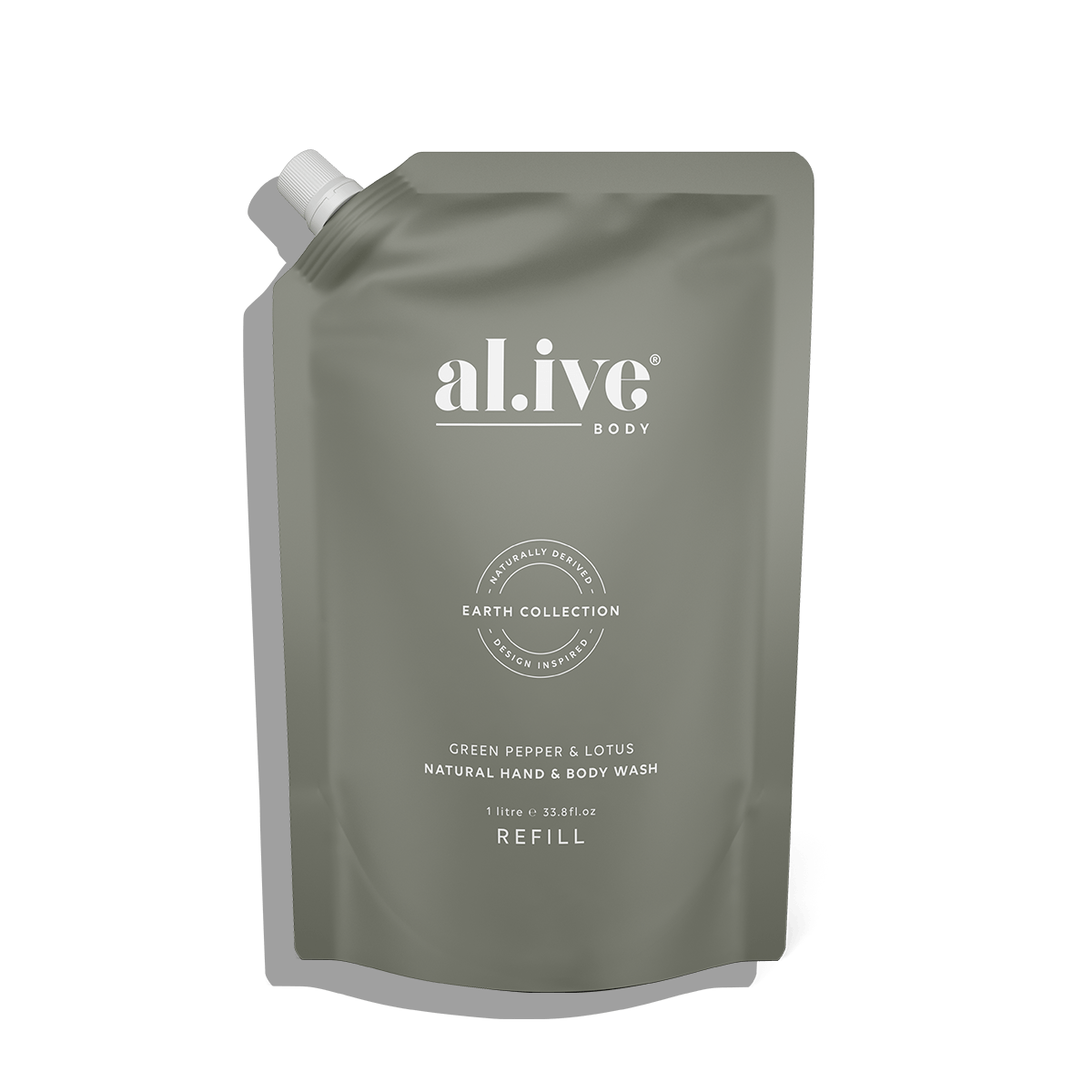 Our 1L refill pouches are designed to refill your existing al.ive body bottles whilst helping to reduce the amount of plastic used. Our refill pouches use 85% less plastic and refill your 500ml al.ive body bottle twice.