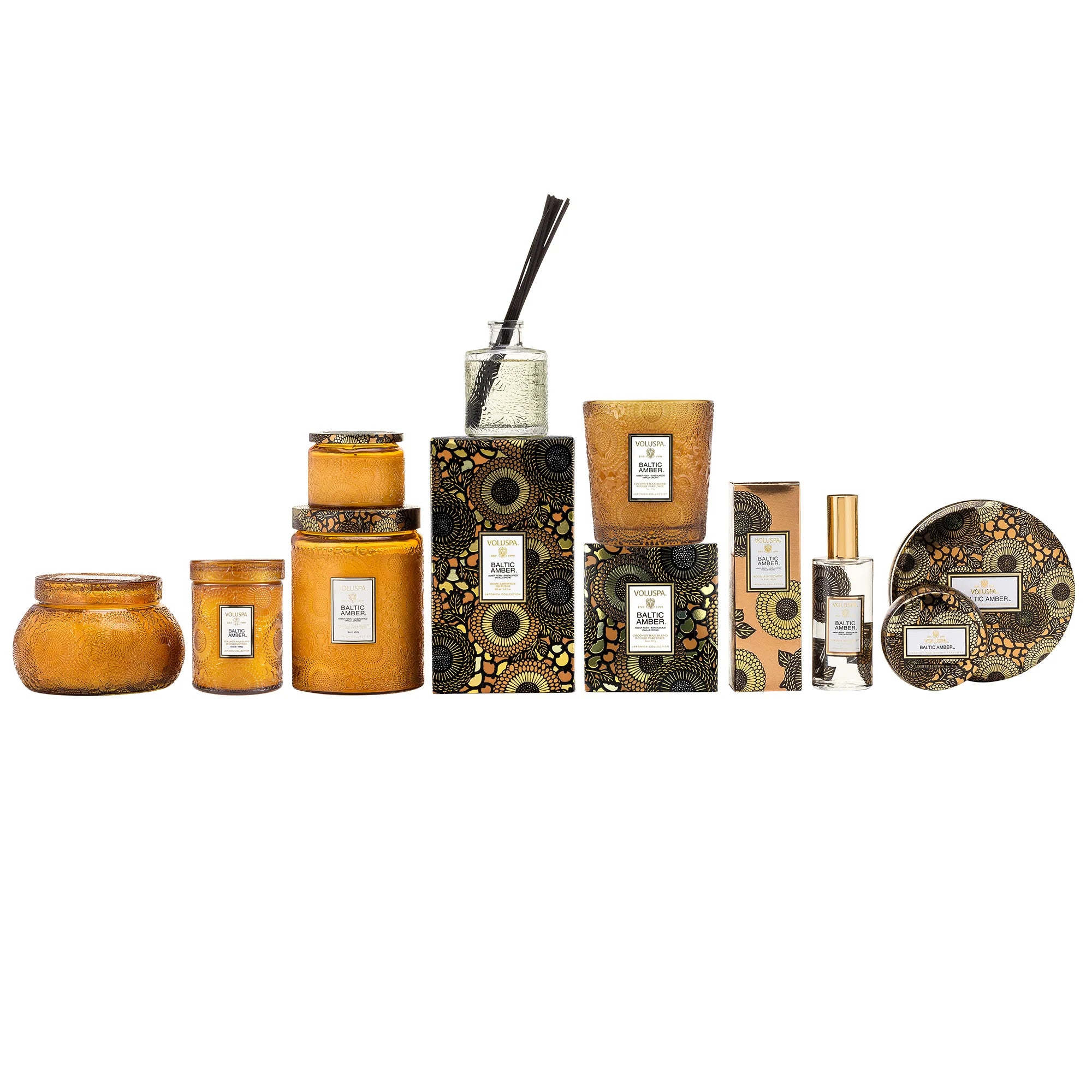 Warm up the ambiance with a sensual soirée of honeyed Amber Resin, velvety Woods and the rich incense of smoldering Vanilla Orchid. Bask in the swoon-worthy golden glow that radiates lingering warmth. Fall under Baltic Amber's spell and prepare to be enchanted…