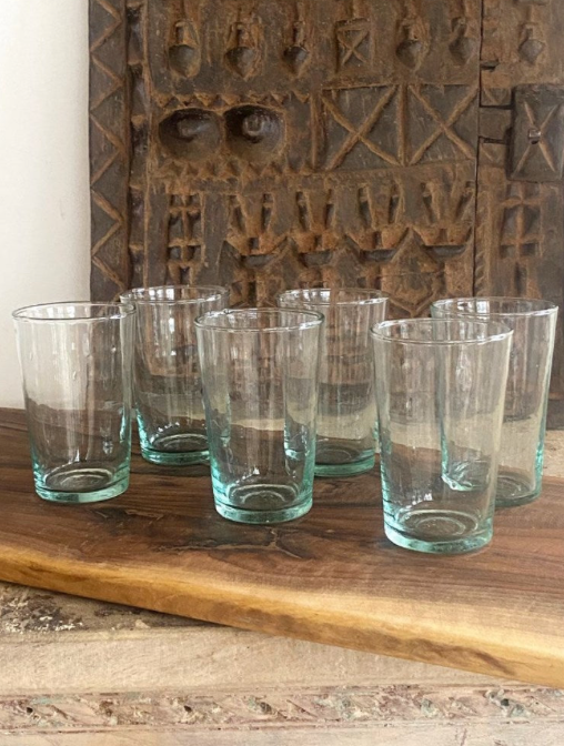 These traditional Beldi Carafes are handblown by artisans in Morocco’s oldest and last remaining glass blowing factory. Verre Beldi artisans recycle two tons of glass daily, reshaping and sculpting these unique, tapered pieces into a functional carafe. Embrace slow made design into your home with our range of Beldi Glassware from Morocco.