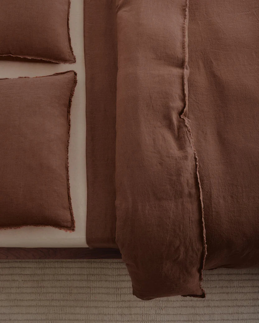 Our Flocca Linen Pillowcase is woven from 170gsm premium Belgian and French long-fibre flax, ensuring exceptional softness and durability. Designed in Melbourne and meticulously crafted in Lithuania, each piece is yarn-dyed for rich and lasting colour. Featuring an envelope closure, a double-stitched hem, and our signature Flocca hand-tufted finish.