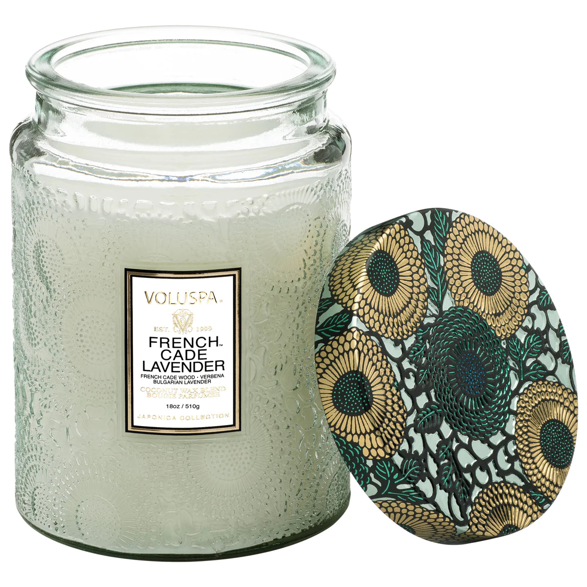 Voluspa's unique coconut wax blend is hand-poured into a 18 oz. embossed glass vessel and is topped with a metal lid, adorned with Japonica detailing that keeps the candle dust-free when not in use. The single wick allows you to enjoy fragrance throw for 100 hours. Our candles are hand-poured in the United States and feature our proprietary, clean-burning coconut wax blend and 100% natural wicks. Our products are free of phthalates, pesticides, parabens and sulfates and are never tested on animals. Up-cycle this best seller into a keepsake after the last burn.