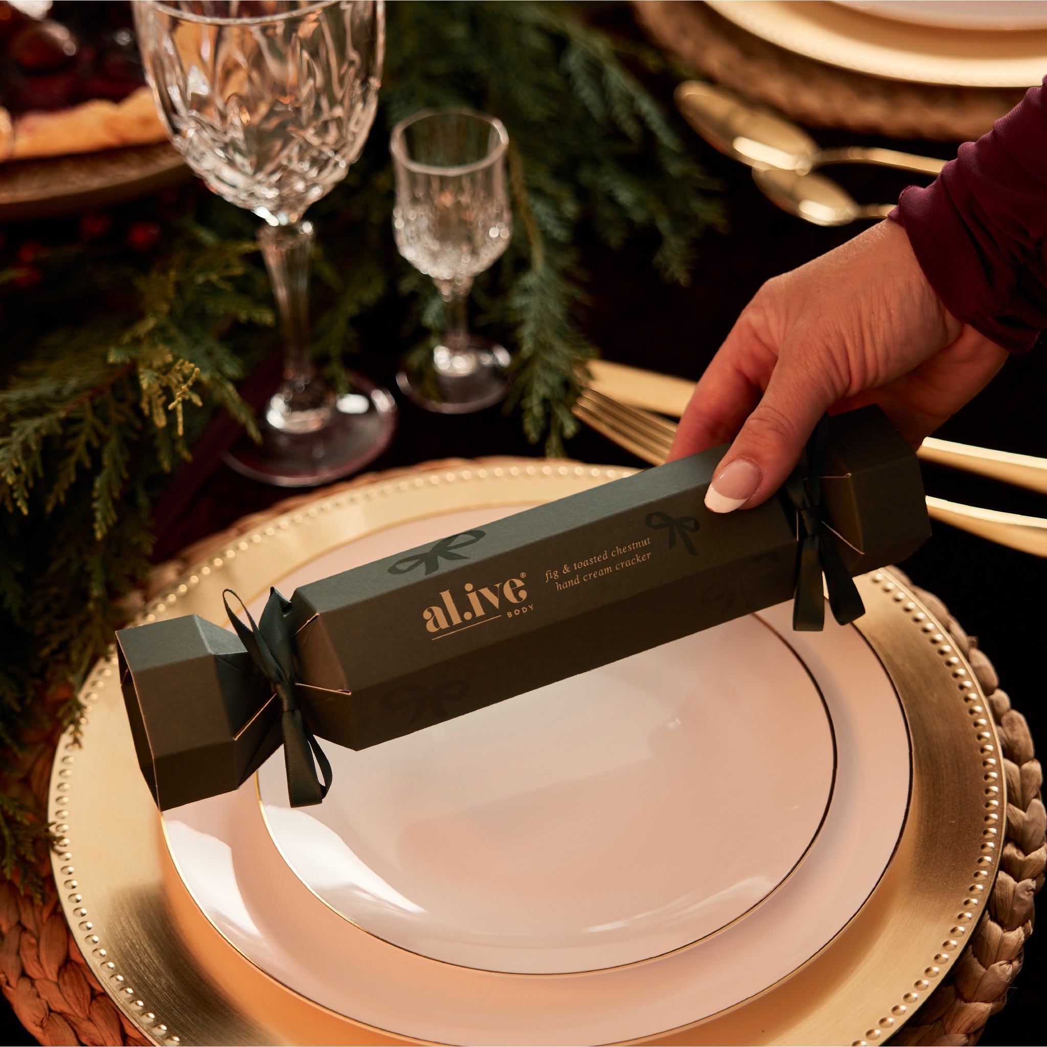 Our nourishing Hand Cream in charming cracker packaging that doubles as a tree ornament. Features exclusive Fig & Toasted Chestnut scent with vitamin E and shea butter - a cosy, warming fragrance perfect for festive gifting.