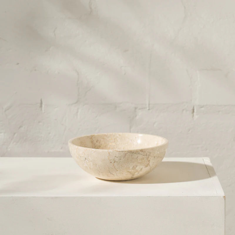 These beautiful bowls are made using natural travertine marble. Each item is unique with different colouring and natural patterning. Marble may contain small cracks, holes and pits that are characteristic of this authentic product.