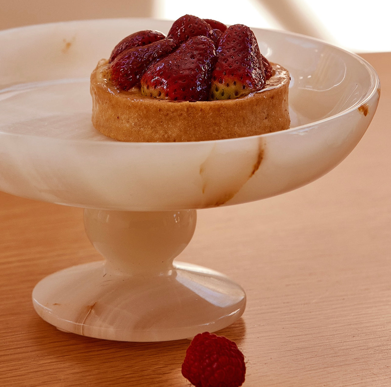 Elevate your dining experience with The Orb Tray from The Orb Collection. Drawing inspiration from mid-century modern classic design, this tray exudes elegance and playfulness in equal measure. Crafted with precision from our classic white onyx material, the Orb Tray features a mesmerizing leg structure adorned with sleek, spherical balls, adding a touch of modern retro flair. The Orb Tray's versatile design makes it an ideal centerpiece for showcasing delectable treats or cherished decor items. As the soft glow of "The Golden Hour" caresses your dining room, let the Orb Tray radiate a sense of timeless beauty and elevate your gatherings to new heights.
