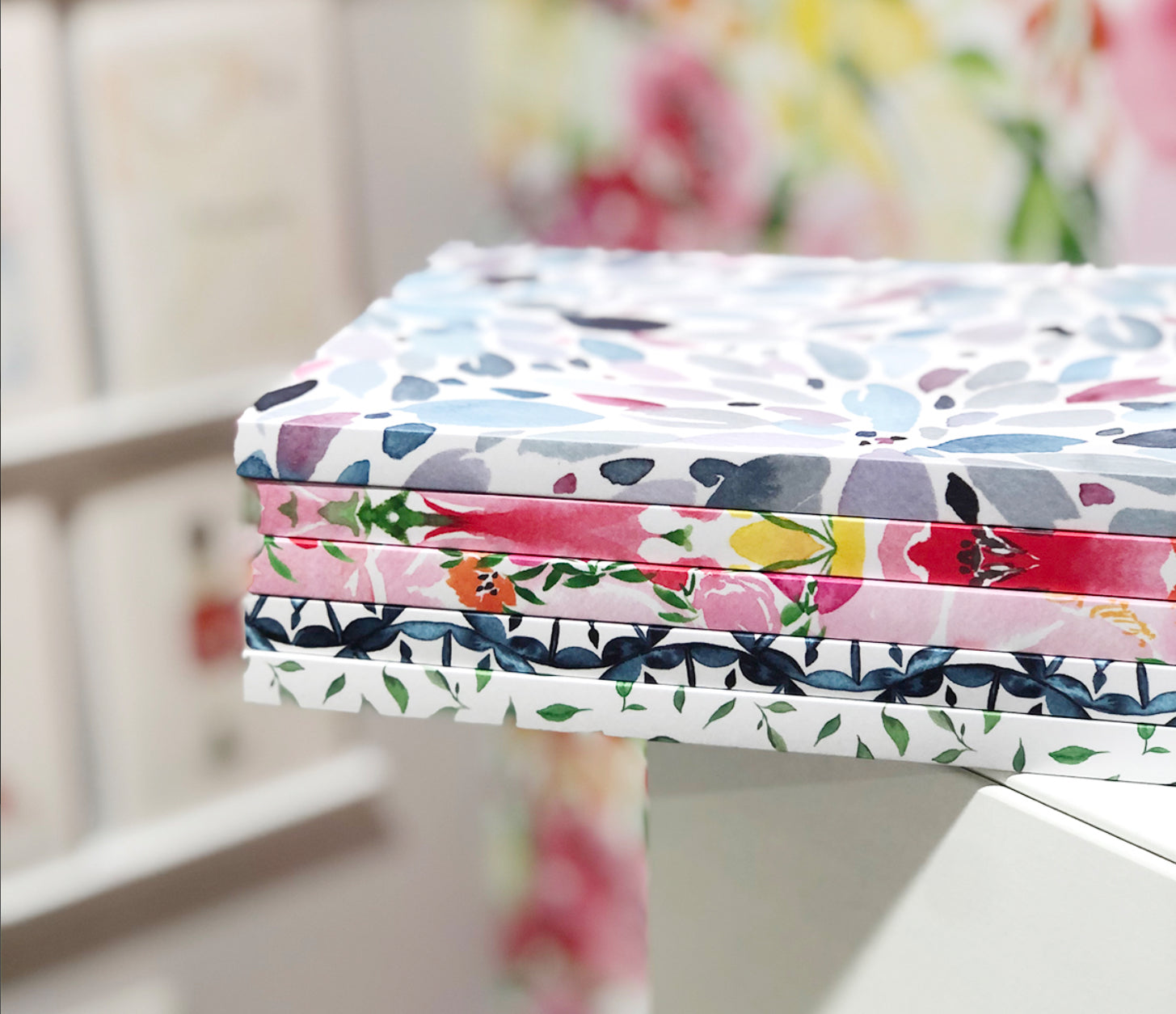 A5 notebook with a watercolour design on front and back cover. 120 pages of lined, 120gsm paper.